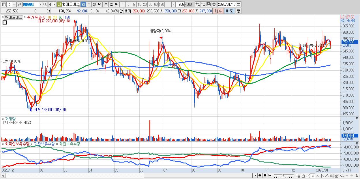 - 현대모비스 (252,500원 0% , 시총: 234,813억, 외국인 순매수 거래금:118억)