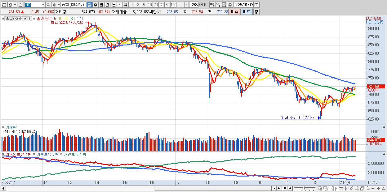 | 01/17 | 724.69 | ▲0.06% | 626억 | -770억 | 271억 | -127억 |