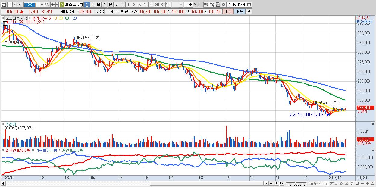 - 포스코퓨처엠 (155,800원 ▲ 3.94% , 시총: 120,688억, 외국인 순매수 거래금:73억)