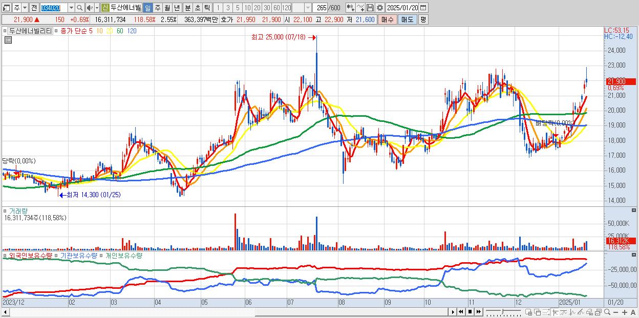 - 두산에너빌리티 (21,900원 ▲ 0.69% , 시총: 140,283억, 거래량: 16,311,734, 거래대금:3,634억)
