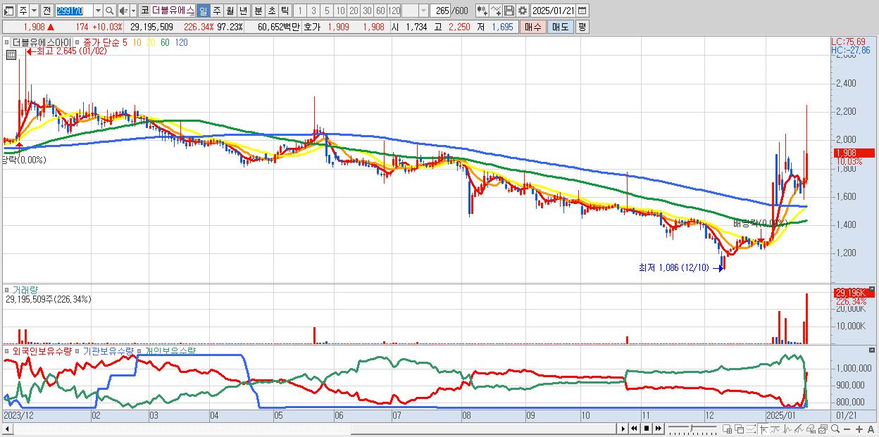 - 더블유에스아이 (1,908원 ▲ 10.03% , 시총: 573억, 거래량: 29,195,509, 거래대금:607억)