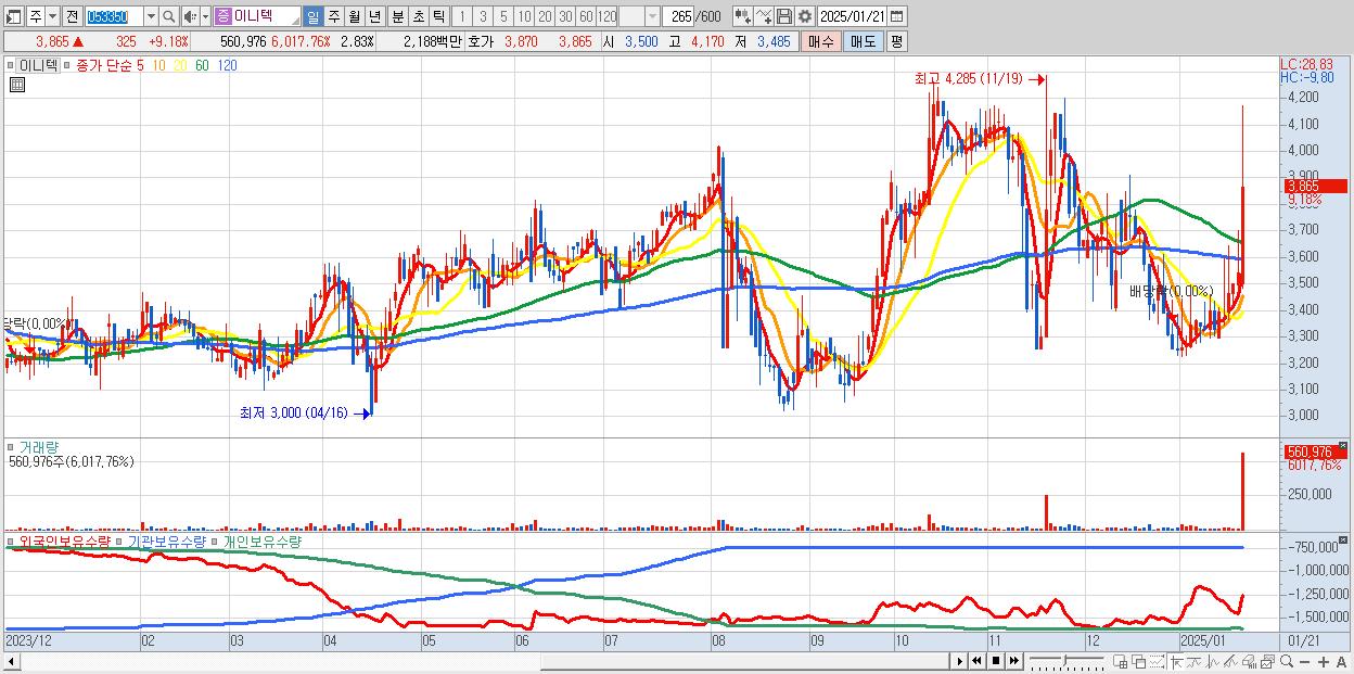 - 이니텍 (3,865원 ▲ 9.18% , 시총: 765억, 거래량: 560,976, 거래대금:22억)