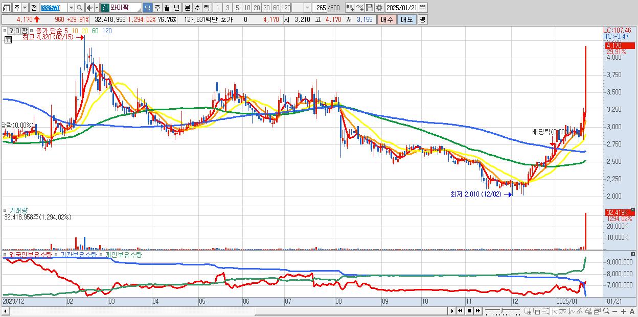 2.와이팜 4,170원 ▲ 29.91% (KOSDAQ, 332570)