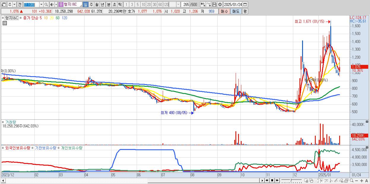 시총: 3,604억 거래량: 1,414,708 거래대금:620억 업종:건설