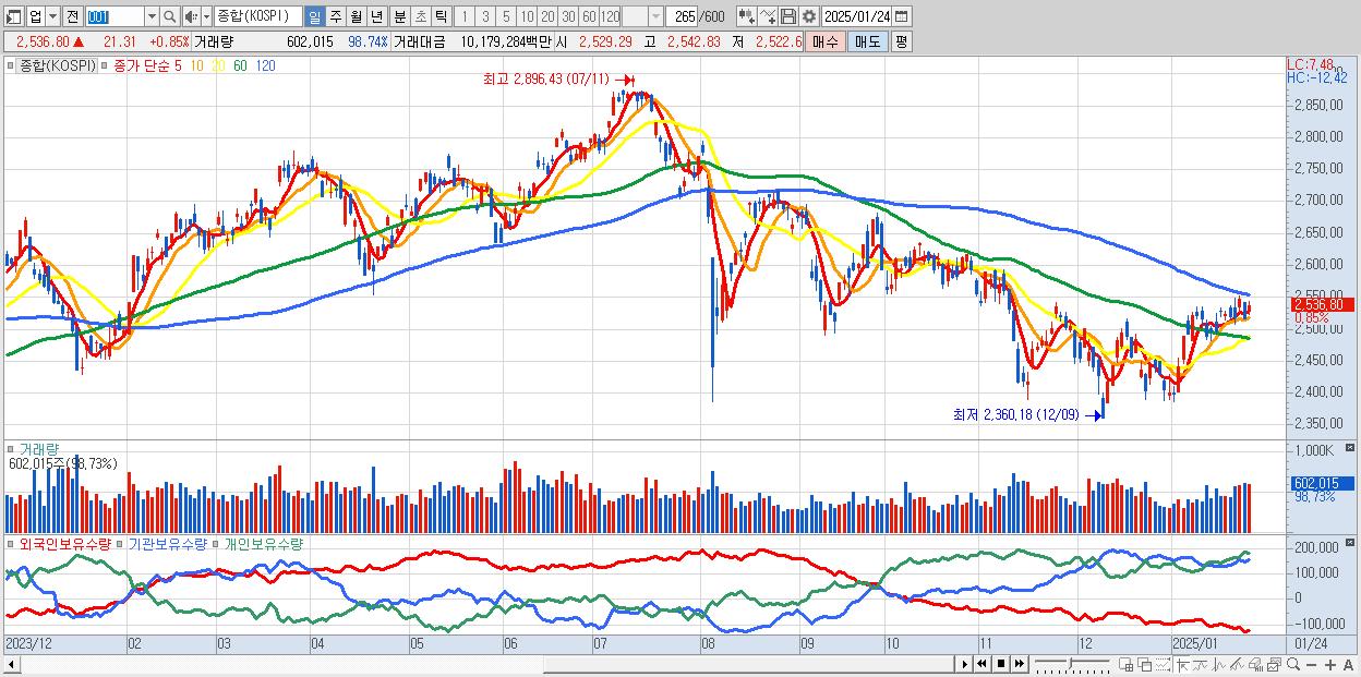 | 01/07 | 2,492.10 | ▲0.14% | -2,049억 | 1,587억 | -423억 | 885억 |