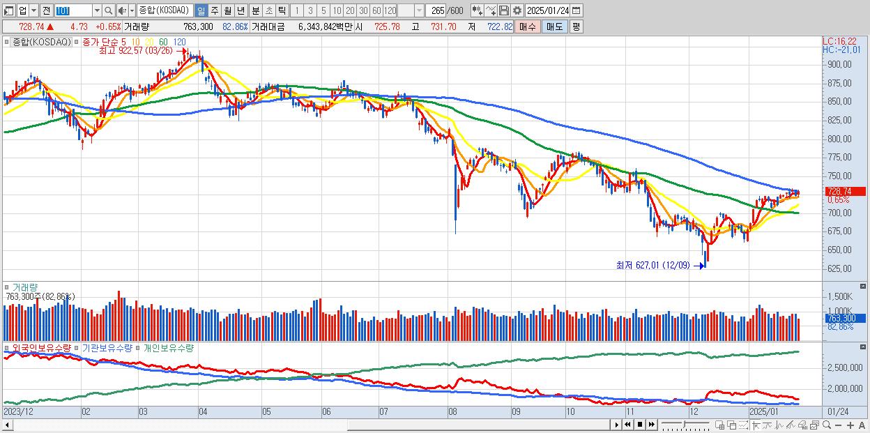 | 01/24 | 728.74 | ▲0.65% | -872억 | 678억 | 94억 | 101억 |