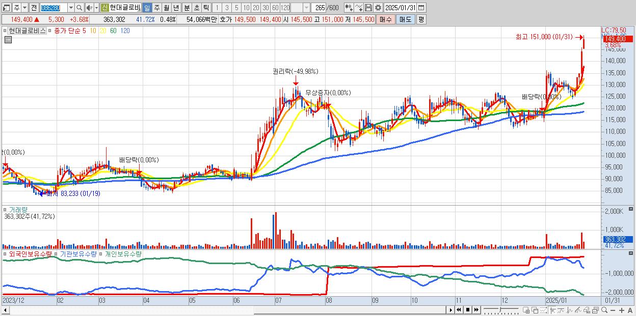 - 현대글로비스 (149,400원 ▲ 3.68% , 시총: 112,050억, 외국인 순매수 거래금:72억)