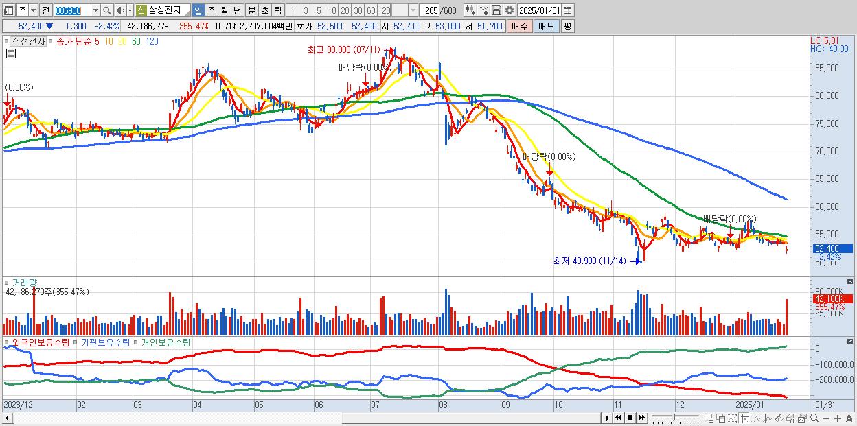 2.삼성전자 52,400원 ▼ -2.42% (KOSPI, 005930)