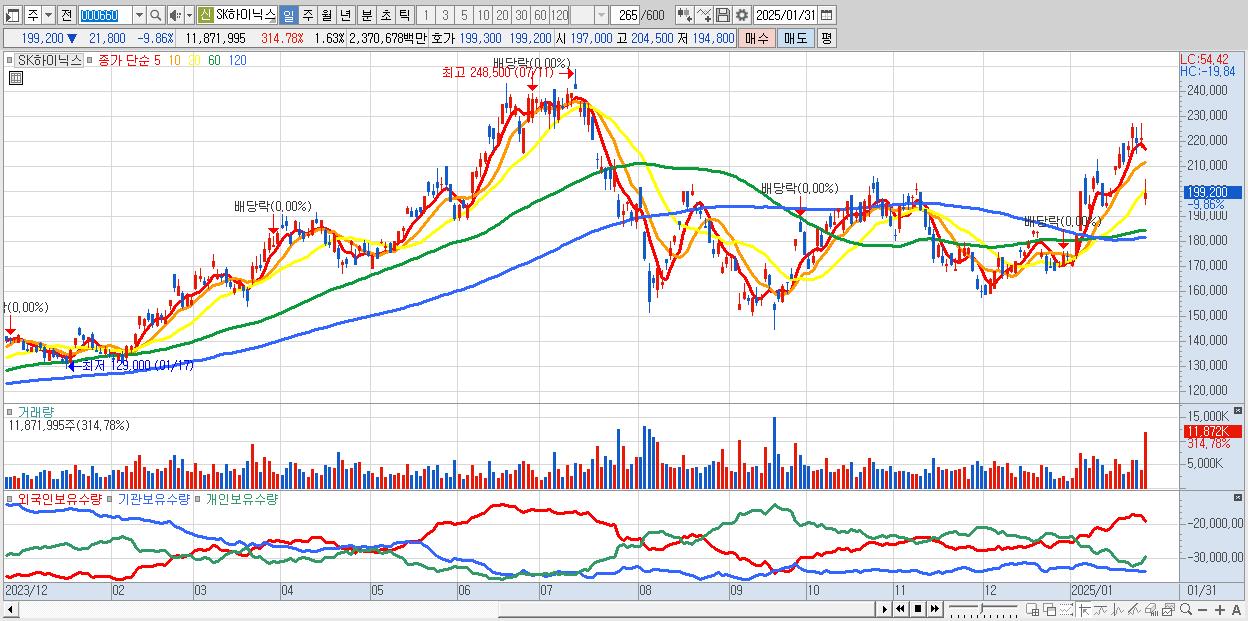 1.SK하이닉스 199,200원 ▼ -9.86% (KOSPI, 000660)
