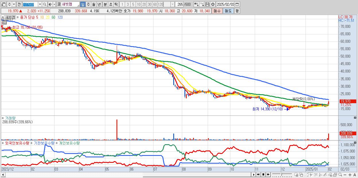 - 새빗켐 (19,970원 ▲ 11.25% , 시총: 995억, 거래량: 208,839, 거래대금:41억)
