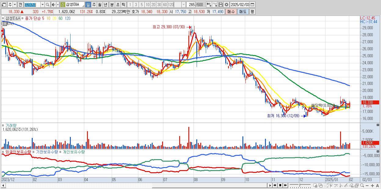 - 삼성E&A (18,330원 ▲ 1.78% , 시총: 35,927억, 외국인 순매수 거래금:40억)