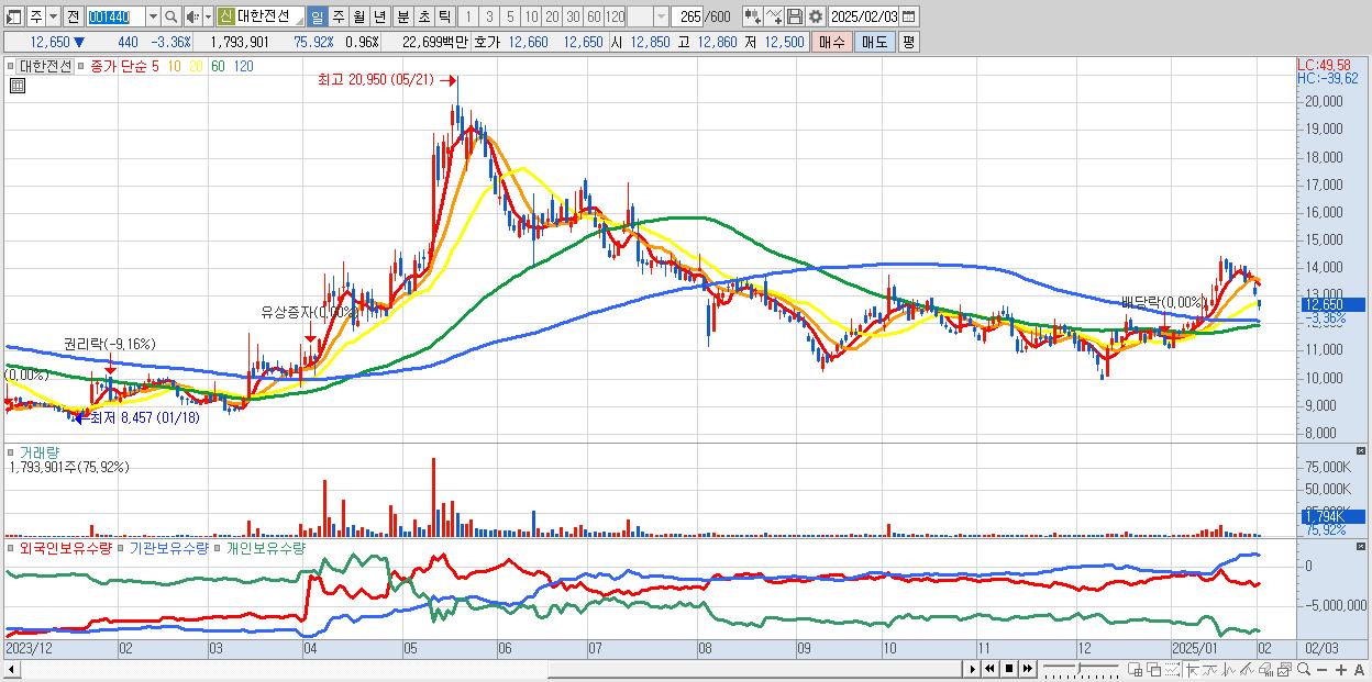 30.대한전선 12,650원 ▼ -3.36% (KOSPI, 001440)