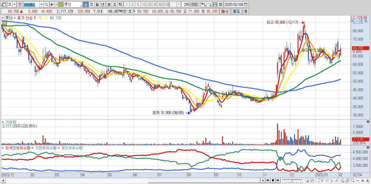 - 루닛 (69,700원 ▲ 8.4% , 시총: 20,173억, 외국인 순매수 거래금:149억)