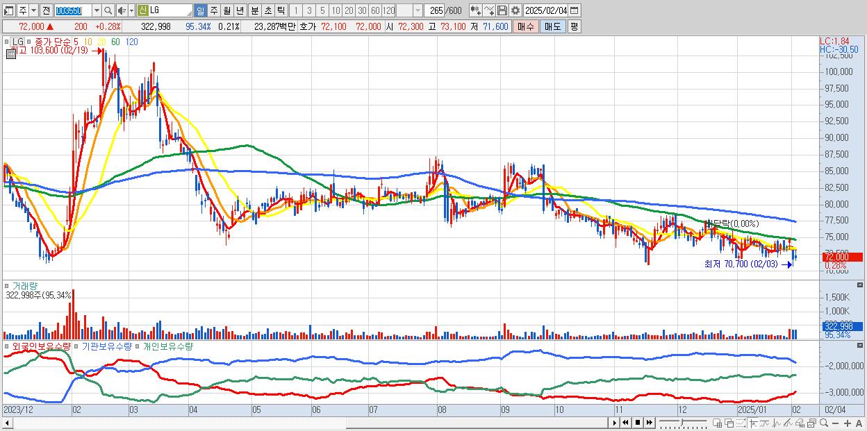 - LG (72,000원 ▲ 0.28% , 시총: 113,257억, 외국인 순매수 거래금:69억)