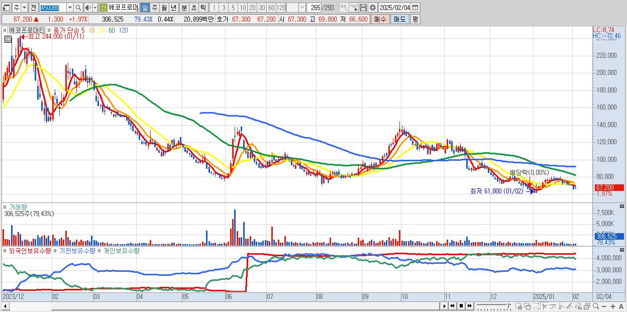 30.에코프로머티 67,200원 ▲ 1.97% (KOSPI, 450080)