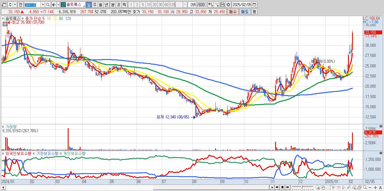 - 솔트룩스 (33,150원 ▲ 17.14% , 시총: 4,021억, 거래량: 6,316,919, 거래대금:2,031억)
