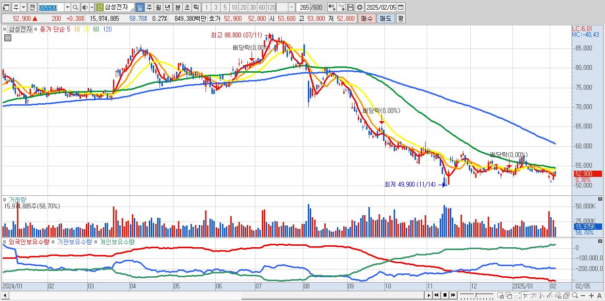 1.삼성전자 52,900원 ▲ 0.38% (KOSPI, 005930)