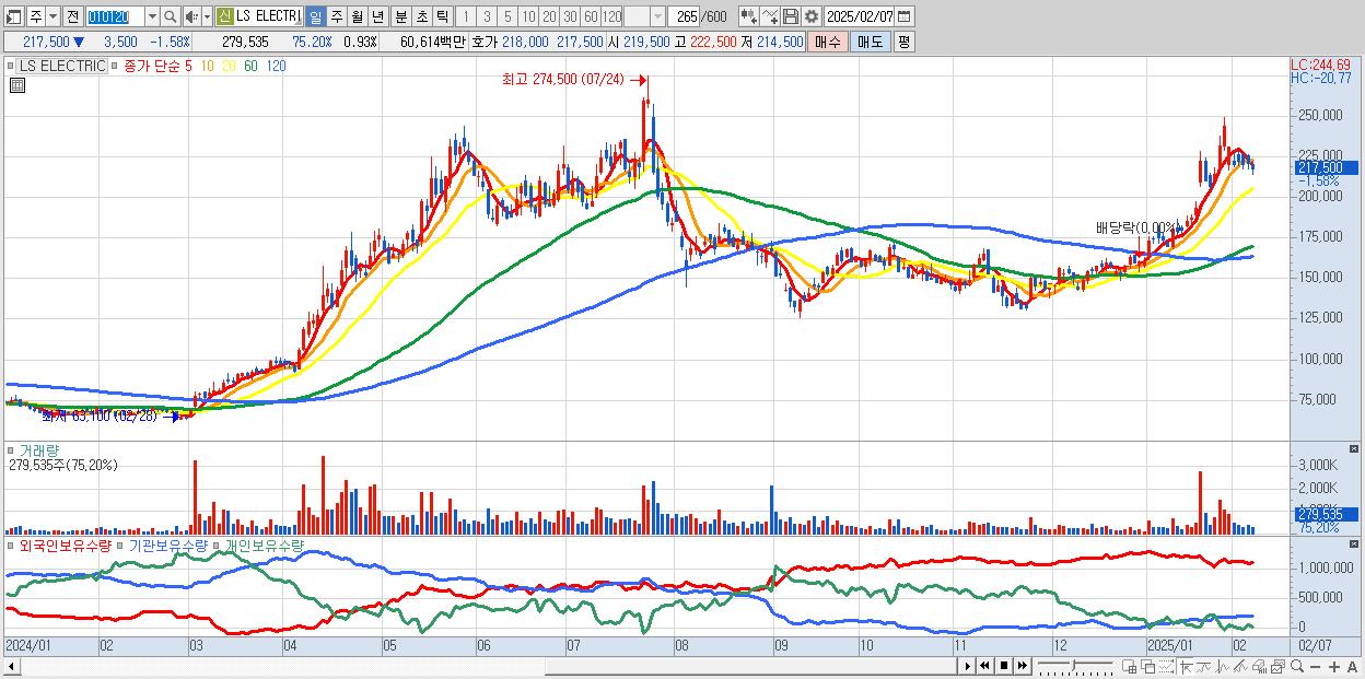- LS ELECTRIC (217,500원 ▼ -1.58% , 시총: 65,250억, 외국인 순매수 거래금:90억)