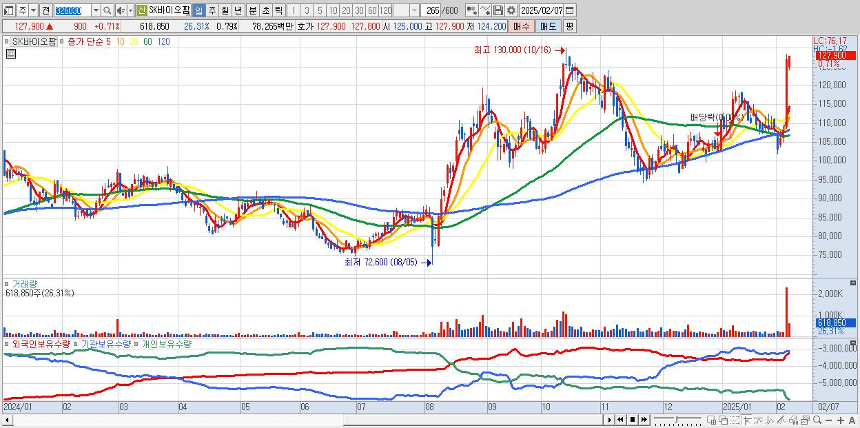 시총: 825,618억 거래량: 190,222 거래대금:2,170억 업종:제약