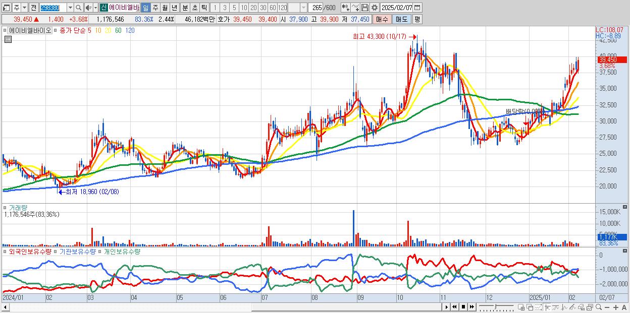 - 에이비엘바이오 (39,450원 ▲ 3.68% , 시총: 19,047억, 외국인 순매수 거래금:80억)