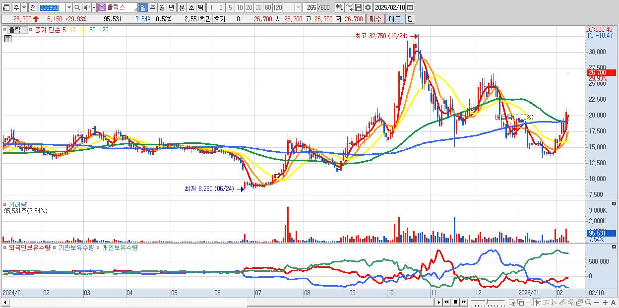 - 올릭스 (26,700원 ▲ 29.93% , 시총: 4,929억, 거래량: 95,531, 거래대금:26억)