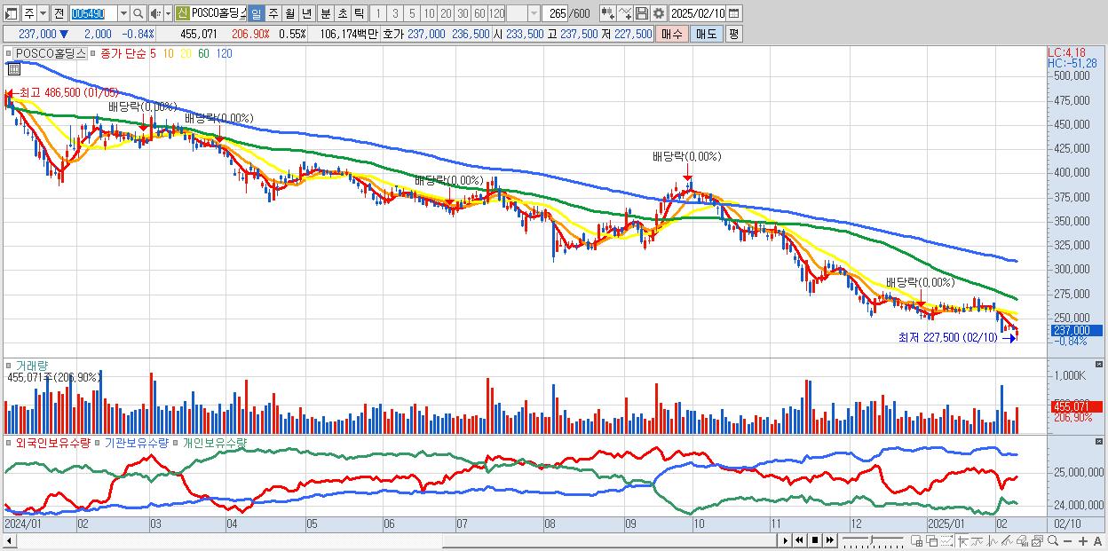 - POSCO홀딩스 (237,000원 ▼ -0.84% , 시총: 195,820억, 외국인 순매수 거래금:104억)