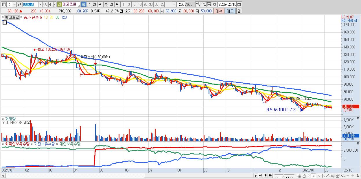 - 에코프로 (60,100원 ▲ 0.33% , 시총: 80,016억, 외국인 순매수 거래금:65억)