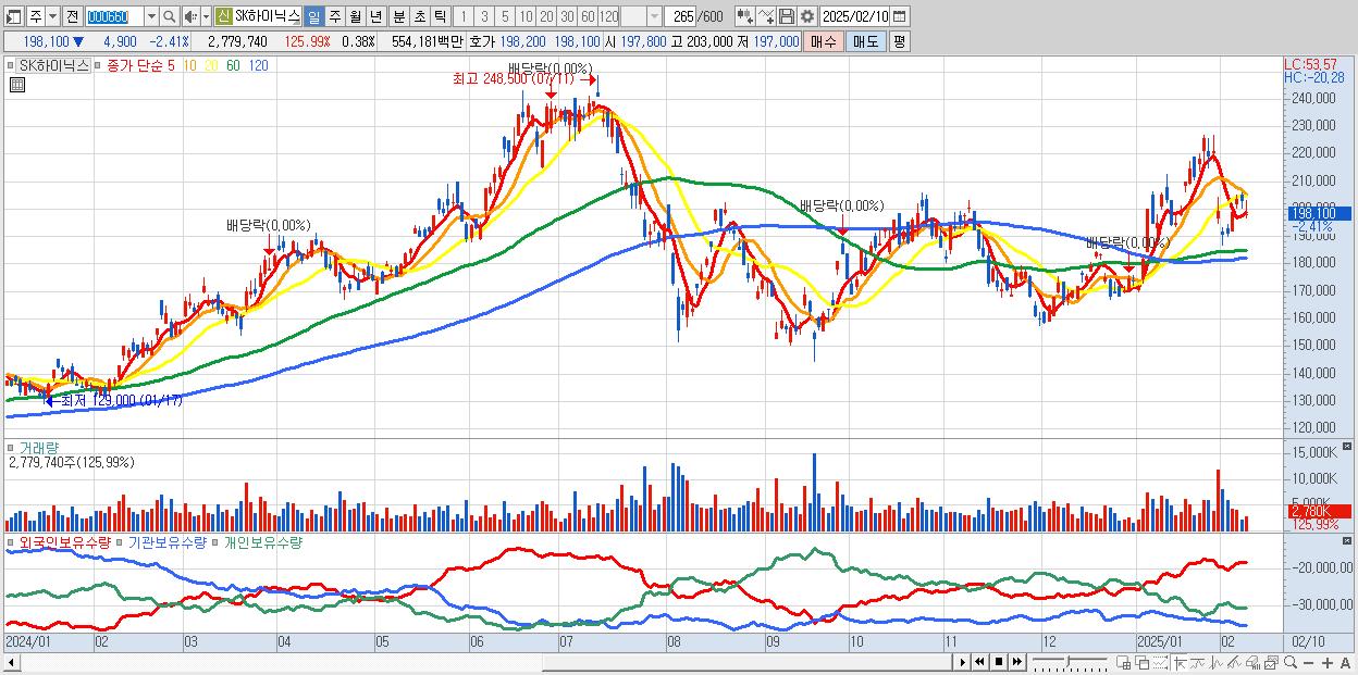 - SK하이닉스 (198,100원 ▼ -2.41% , 시총: 1,442,173억, 외국인 순매수 거래금:78억)