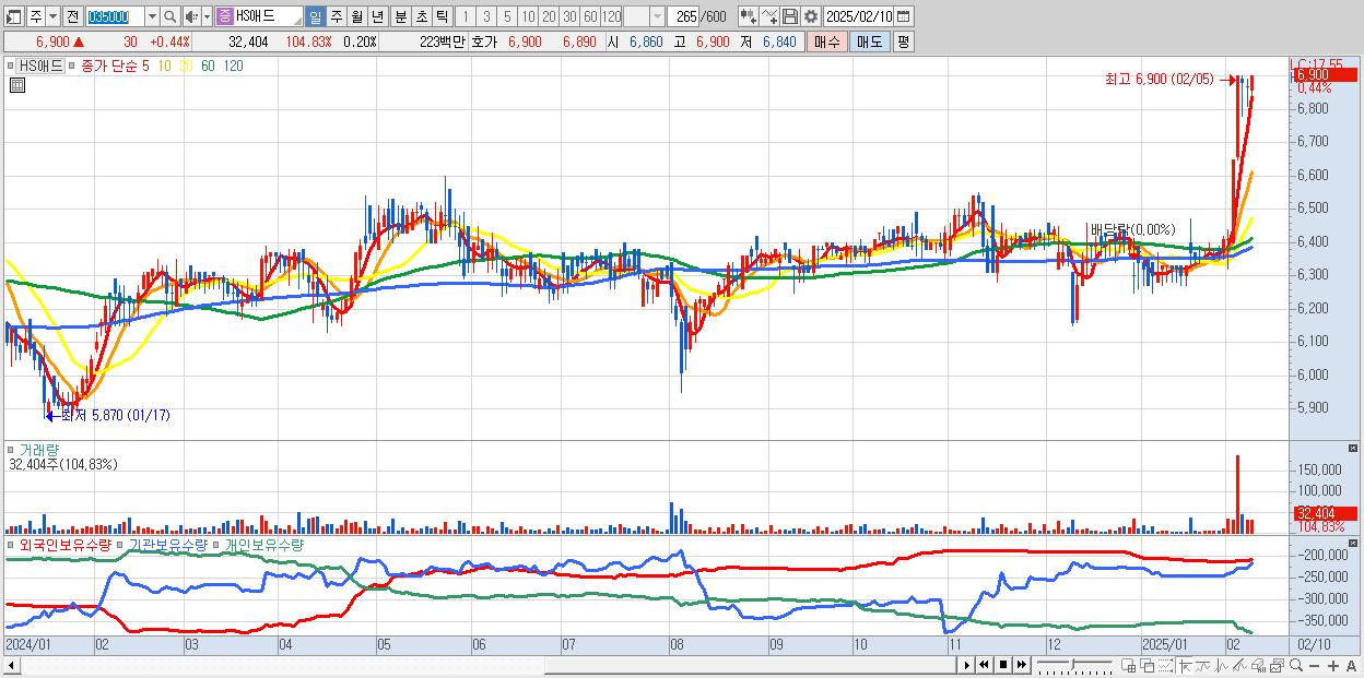 HS애드 6,900원 ▲ 0.44% (KOSPI, 035000)