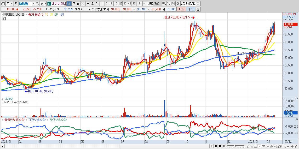 30.에이비엘바이오 40,800원 ▲ 5.29% (KOSDAQ, 298380)