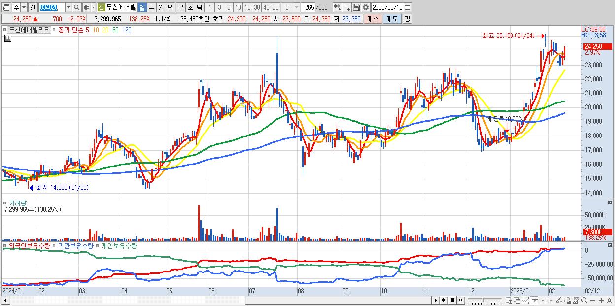 - 두산에너빌리티 (24,250원 ▲ 2.97% , 시총: 155,336억, 외국인 순매수 거래금:86억)