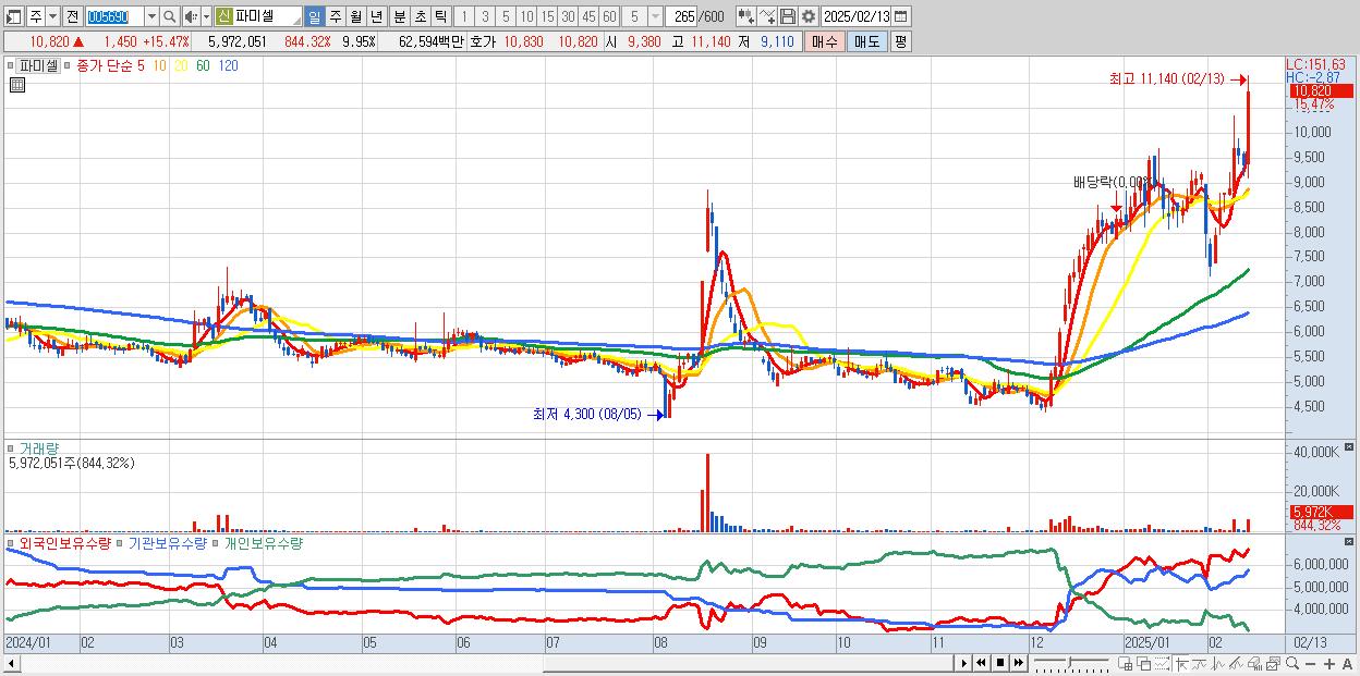 - 파미셀 (10,820원 ▲ 15.47% , 시총: 6,494억, 거래량: 5,972,051, 거래대금:626억)