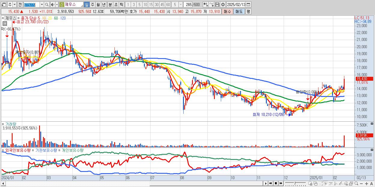 - 제우스 (15,430원 ▲ 11.01% , 시총: 4,786억, 거래량: 3,918,553, 거래대금:597억)