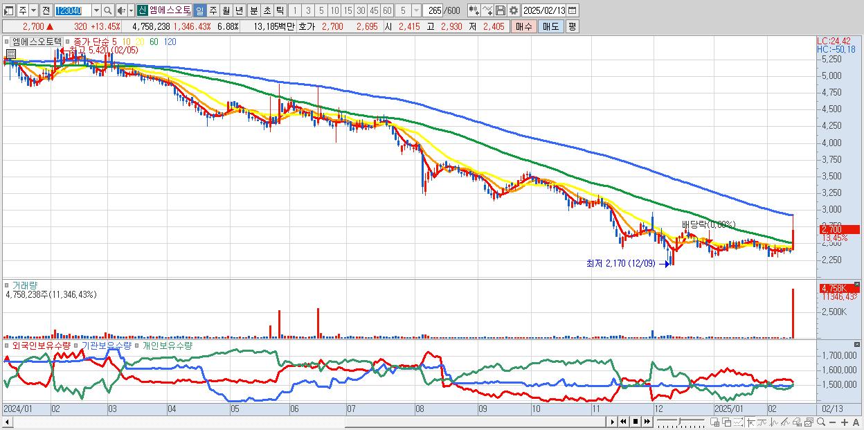 - 엠에스오토텍 (2,700원 ▲ 13.45% , 시총: 1,868억, 거래량: 4,758,238, 거래대금:132억)