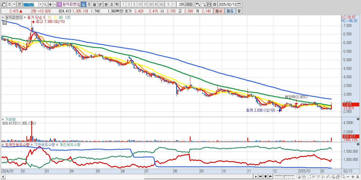 - 원익피앤이 (2,415원 ▲ 13.92% , 시총: 1,146억, 거래량: 824,413, 거래대금:20억)