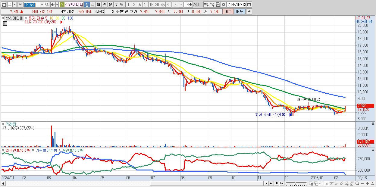 - 상신이디피 (7,940원 ▲ 12.15% , 시총: 1,058억, 거래량: 471,182, 거래대금:37억)