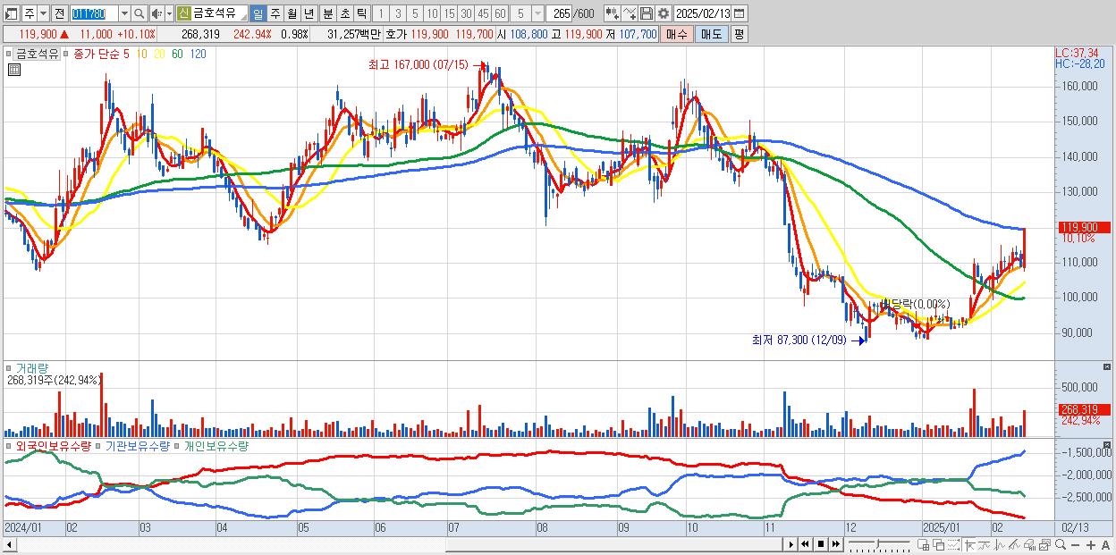 30.금호석유 119,900원 ▲ 10.1% (KOSPI, 011780)