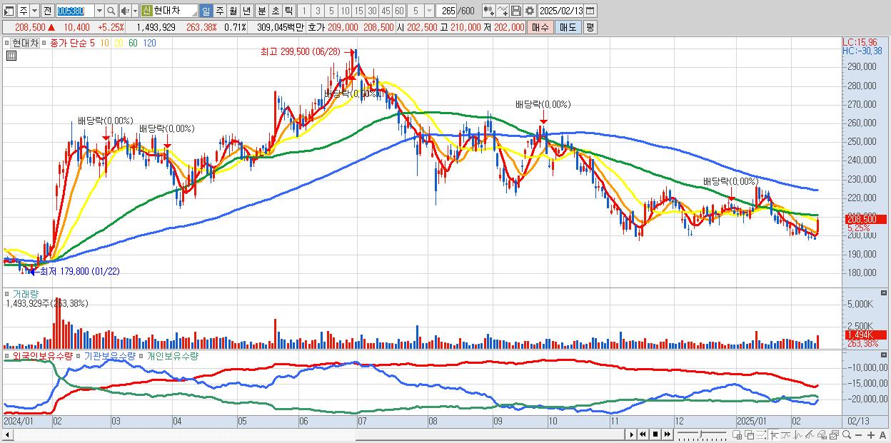 1.현대차 208,500원 ▲ 5.25% (KOSPI, 005380)