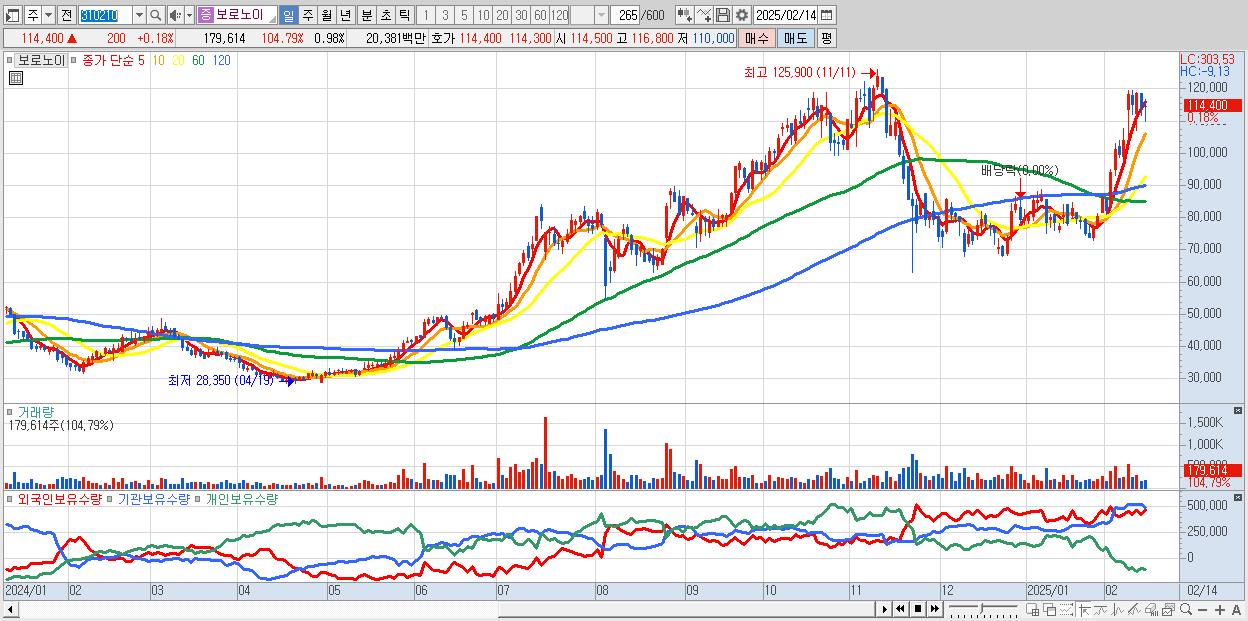 - 보로노이 (114,400원 ▲ 0.18% , 시총: 21,015억, 외국인 순매수 거래금:41억)