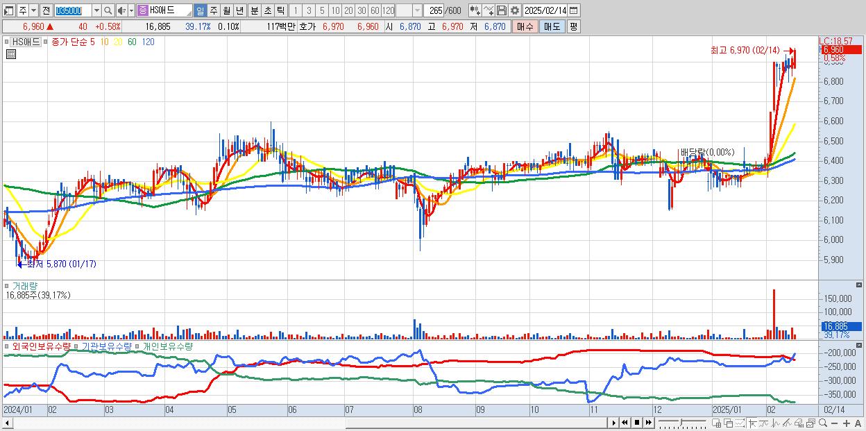 HS애드 6,960원 ▲ 0.58% (KOSPI, 035000)