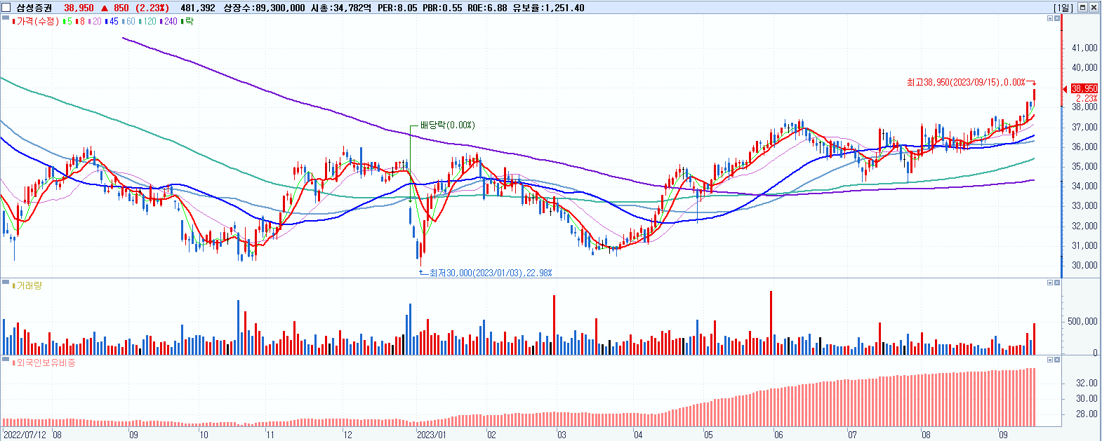 삼성증권 38,950원 ▲ 2.23% (KOSPI, 016360)