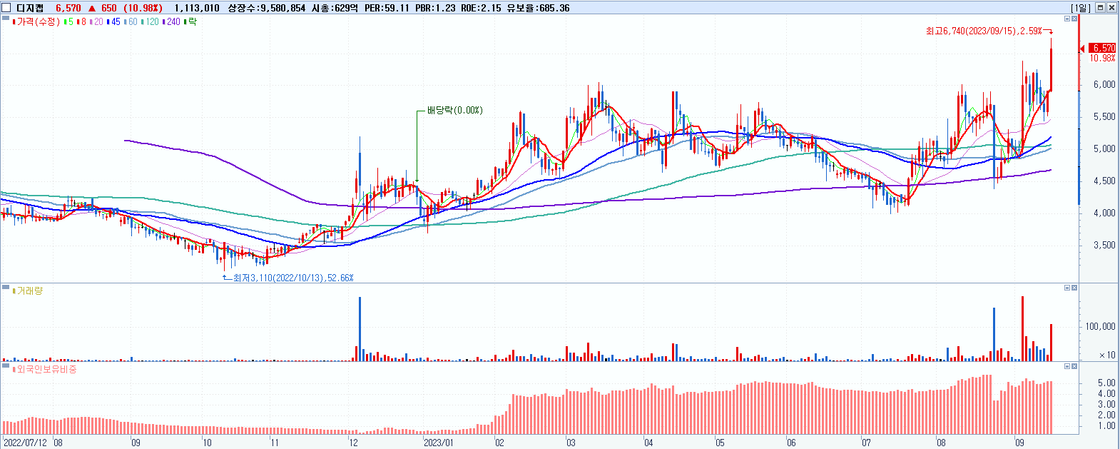 시총: 629억 거래량: 1,123,480 거래대금:72억