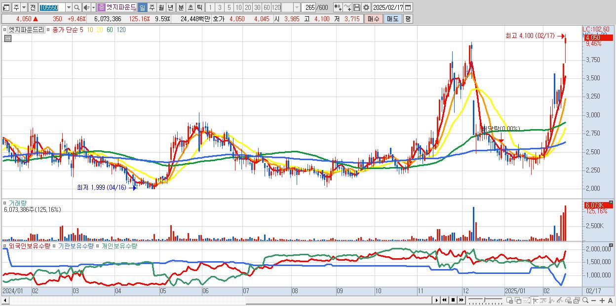 2025-01-20 목표주가: 130,000 투자의견: TRADING BUY 상승여력: 8.79% 제공처:미래에셋증권/정태준