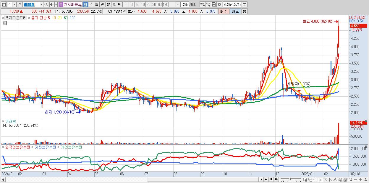 - 엣지파운드리 (4,630원 ▲ 14.32% , 시총: 2,932억, 거래량: 14,165,386, 거래대금:635억)