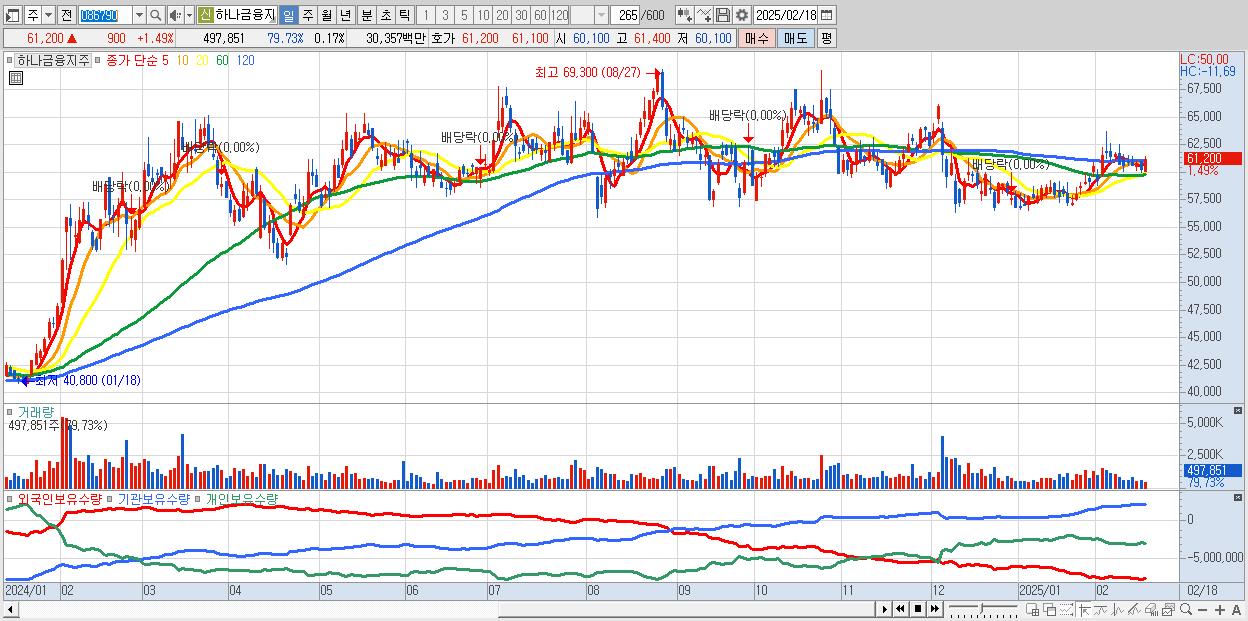 - 하나금융지주 (61,200원 ▲ 1.49% , 시총: 175,791억, 외국인 순매수 거래금:73억)
