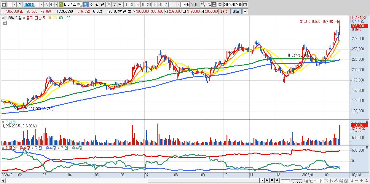 2.LIG넥스원 306,000원 ▲ 9.09% (KOSPI, 079550)