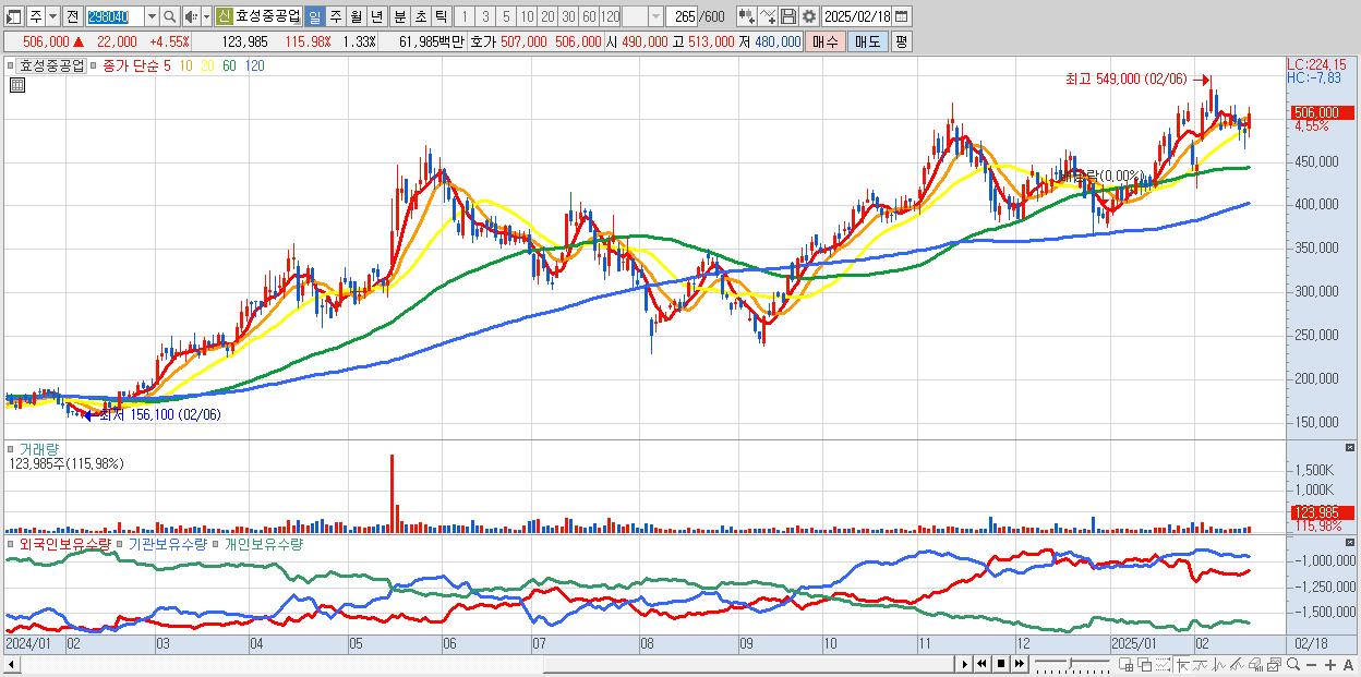 - 효성중공업 (506,000원 ▲ 4.55% , 시총: 47,182억, 외국인 순매수 거래금:75억)