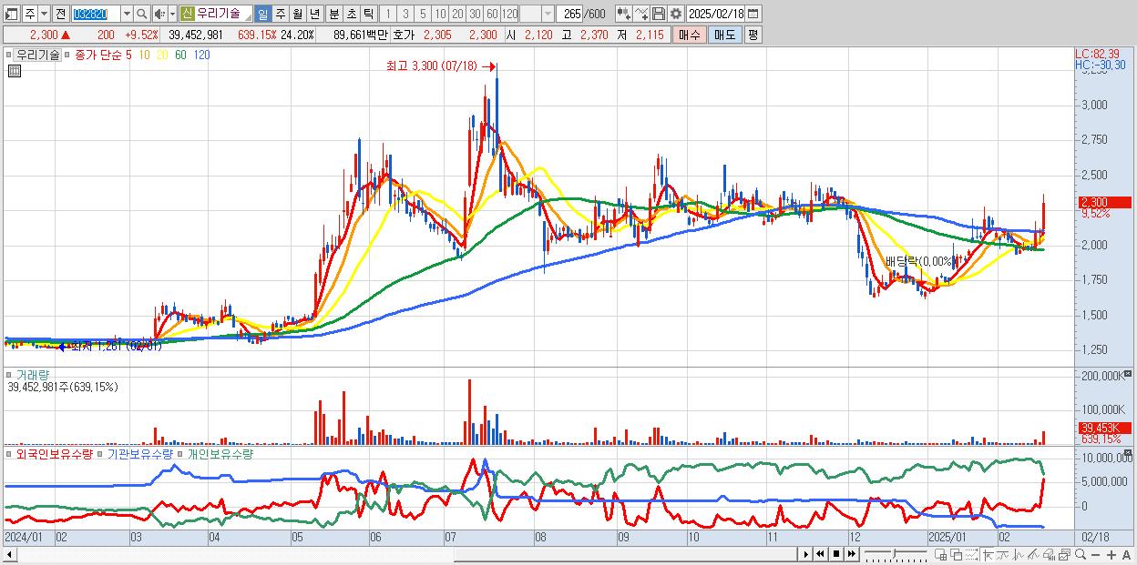 - 우리기술 (2,300원 ▲ 9.52% , 시총: 3,750억, 외국인 순매수 거래금:66억)