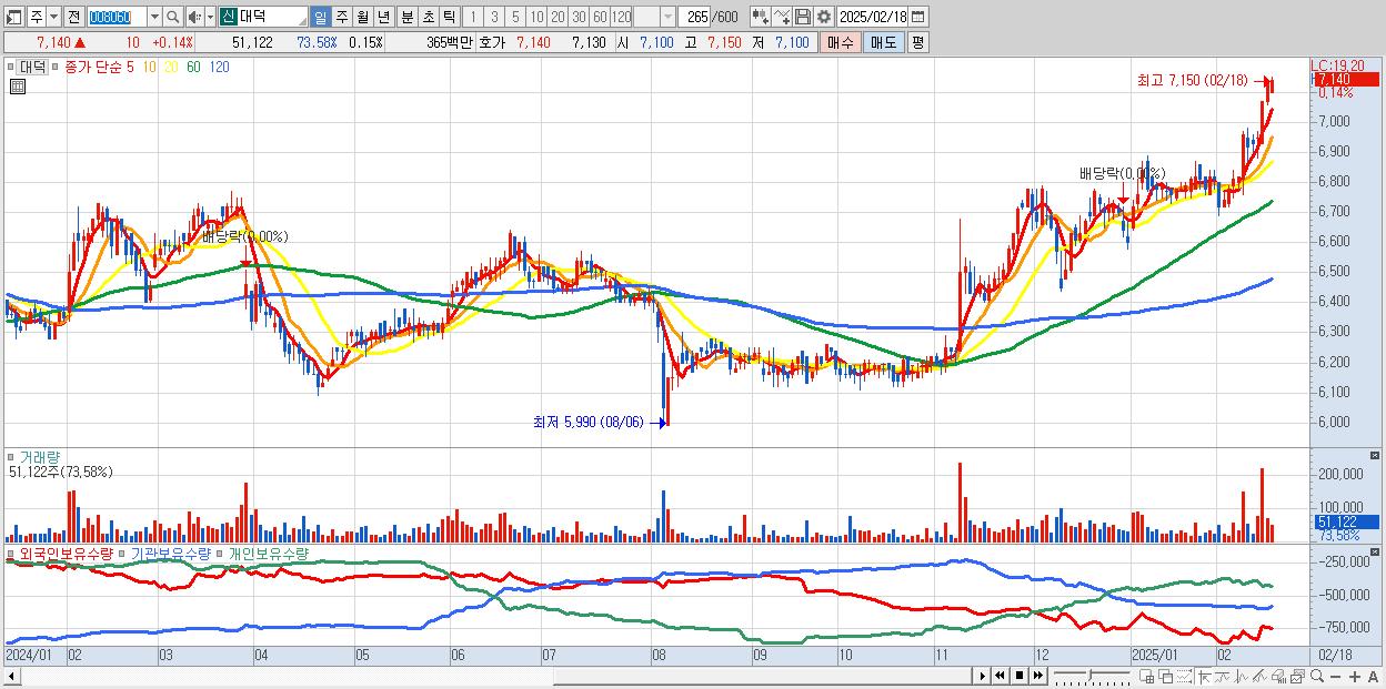 대덕 7,140원 ▲ 0.14% (KOSPI, 008060)
