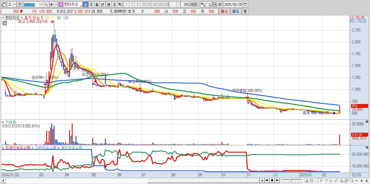 - 판타지오 (656원 ▲ 29.9% , 시총: 301억, 거래량: 9,612,612, 거래대금:60억)